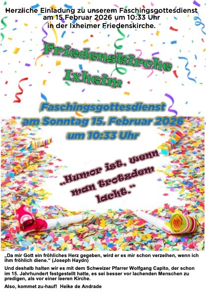 Faschings-Gottesdienst in Ixheim um 10.33 Uhr. Weiterlesen…